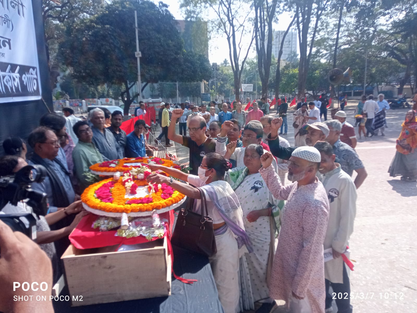 শ্রদ্ধাঞ্জলি দেন বাংলাদেশ ভূমিহীন আন্দোলন এর প্রধান উপদেষ্টা এবং রাষ্ট্র সংষ্কার আন্দোলনের প্রধান সম্ময়ক এডভোকেট হাসনাত কাইয়ুম, বাংলাদেশ ভূমিহীন আন্দোলন এর সাধারণ সম্পাদক শেখ নাসির উদ্দিন, যুগ্ম সাধারণ সম্পাদক ছামিউল আলম রাসু, শ্রমিক নেতা রাষ্ট্র শ্রমিক আন্দোলনে আহবায়ক মোঃ মিন্টু মিয়া, রাষ্ট্র সংষ্কার আন্দোলনের নারী নেত্রী জাকিয়া শিশির, রাষ্ট্র সংষ্কার আন্দোলনের সম্মন্য়ক সদস্য বীর মুক্তিযোদ্ধা মাহমুদ জামাল কাদেরী।