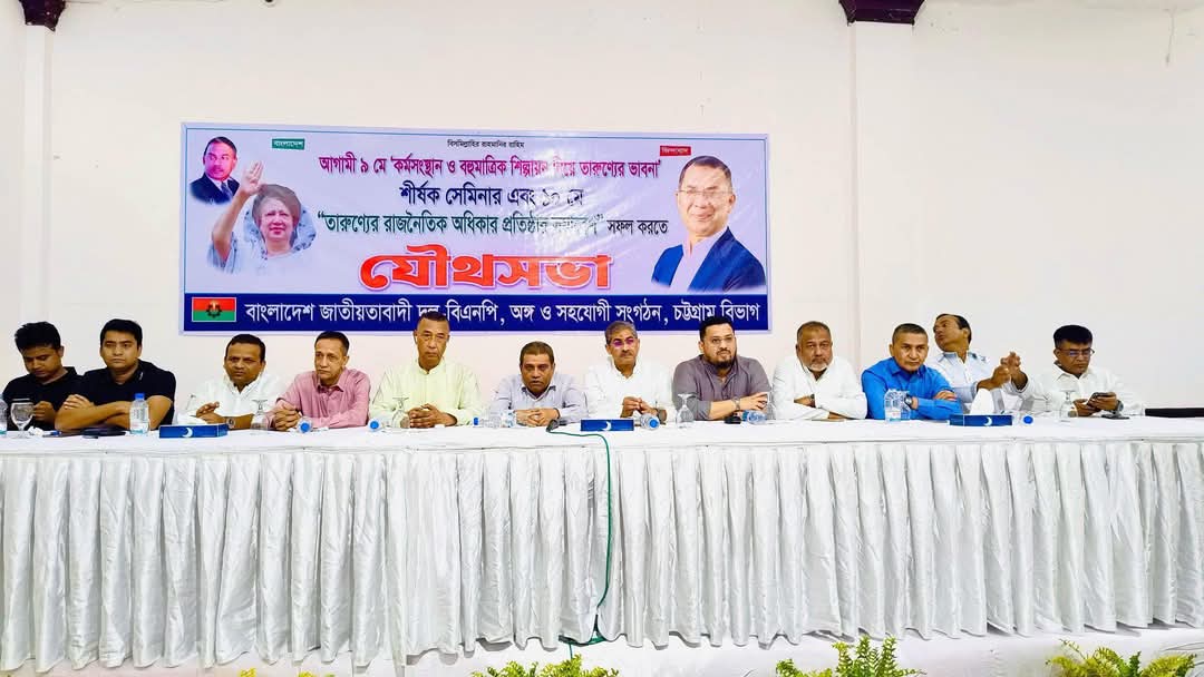 বাংলাদেশ জাতীয়তাবাদী যুবদল, স্বেচ্ছাসেবক দল ও ছাত্রদলের যৌথ উদ্যোগে আগামী ০৯ ও ১০ মে ২০২৫, চট্টগ্রামে অনুষ্ঠিতব্য ‘কর্মসংস্থান ও বহুমাত্রিক শিল্পায়ন নিয়ে তারুণ্যের ভাবনা’ শীর্ষক সেমিনার এবং তারুণ্যের রাজনৈতিক অধিকার প্রতিষ্ঠার সমাবেশ সফল করার লক্ষ্যে আজ ২৯ এপ্রিল ২০২৫, মঙ্গলবার বিকেল ৩ টায় চট্টগ্রামস্থ হোটেল আগ্রাবাদের ইছামতি হল রুমে প্রস্তুতি সভা অনুষ্ঠিত হয়।