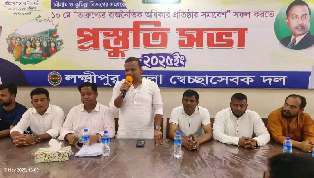 আগামী ১০ মে চট্টগ্রামের ঐতিহাসিক পলোগ্রাউন্ড ময়দানে তারুণ্যের সমাবেশ উপলক্ষে লক্ষিপুর জেলা সেচ্ছাসেবক দলের প্রস্তুতি সভা।