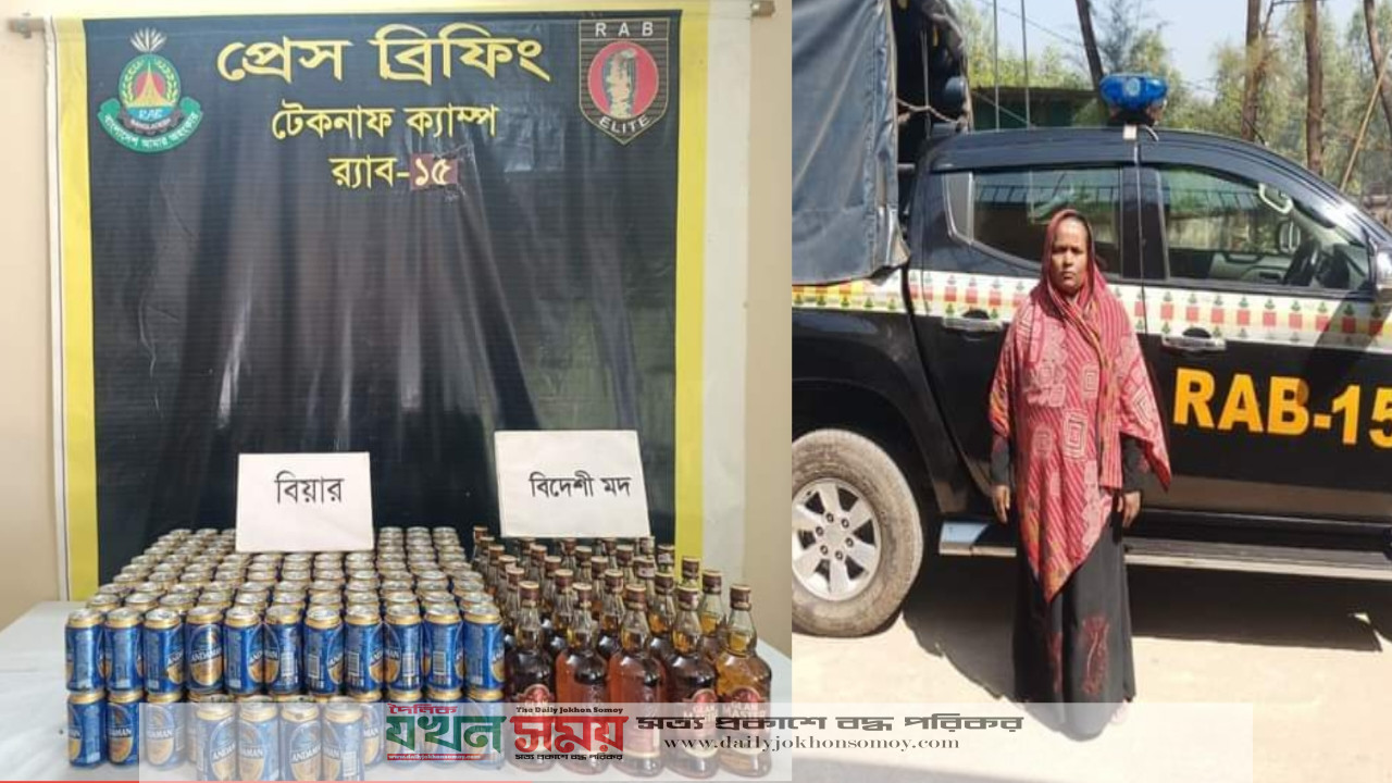 র্যাব-১৫, কক্সবাজার এর সিপিসি-১ টেকনাফ ক্যাম্পের আভিযানিক দল অদ্য ০৪/০২/২০২৩ তারিখ ১১.০০ ঘটিকার সময় গোপন সংবাদের ভিত্তিতে অবগত হয়ে কক্সবাজার জেলার টেকনাফ থানাধীন সাবরাং নোয়াপাড়া ০৬ নং ওয়ার্ড এর অন্তর্গত ধৃত আসামীর বসতঘরের নিকট এক অভিযান পরিচালনা করে। আভিযানিক দল বর্ণিত স্থানে পৌঁছালে আভিযানিক দল দেখে মহিলা দ্রুত একটি ঘরে লোকানোর চেষ্টা করে। তখন উক্ত মহিলাকে ঘরে আটক করা হলে স্বীকার করে যে বসতঘরটি তার এবং মহিলার দেখানো ও নিজ হাতে বের করে দেওয়া মতে অভিযানিক দল উপস্থিত সাক্ষীদের সম্মুখে বিধি মোতাবেক তল্লাশী করে সর্বমোট ৩০(ত্রিশ) টি বিদেশী মদের বোতল এবং ২২৪(দুইশত চব্বিশ) টি বিয়ার ক্যান উদ্ধার করতে সক্ষম হয়। প্রাথমিক জিজ্ঞাসাবাদে ধৃত মহিলার বিস্তারিত পরিচয় নূর নাহার বেগম (৪৫), স্বামী- আব্দুস সালাম, পিতা- জহির আহমদ, মাতা- মৃত ফরিদা খাতুন, সাং- সাবরাং নোয়াপাড়া, ০৬ নং ওয়ার্ড, ইউপি- সাবরাং, থানা- টেকনাফ, জেলা- কক্সবাজার জানা যায়। জিজ্ঞাসাবাদে আরো জানা যায়, সে দীর্ঘদিন যাবৎ মদ ও বিয়ার ইত্যাদি মাদকদ্রব্য নিজ ঘরে রেখে বিভিন্ন মাদক ব্যবসায়ীদের নিকট বিক্রয় করত বলে স্বীকার করে। অদ্য উপরোল্লিখিত বিদেশী বিয়ার ক্যানসহ র্যাবের আভিযানিক দলের কাছে ধৃত হয়।