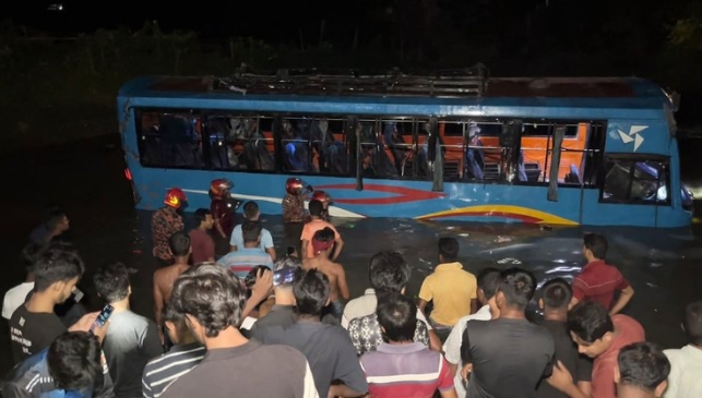 নিয়ন্ত্রণ হারিয়ে বাস পুকুরে পড়ে ৩ জন নিহত ও আহত ২০ জন :