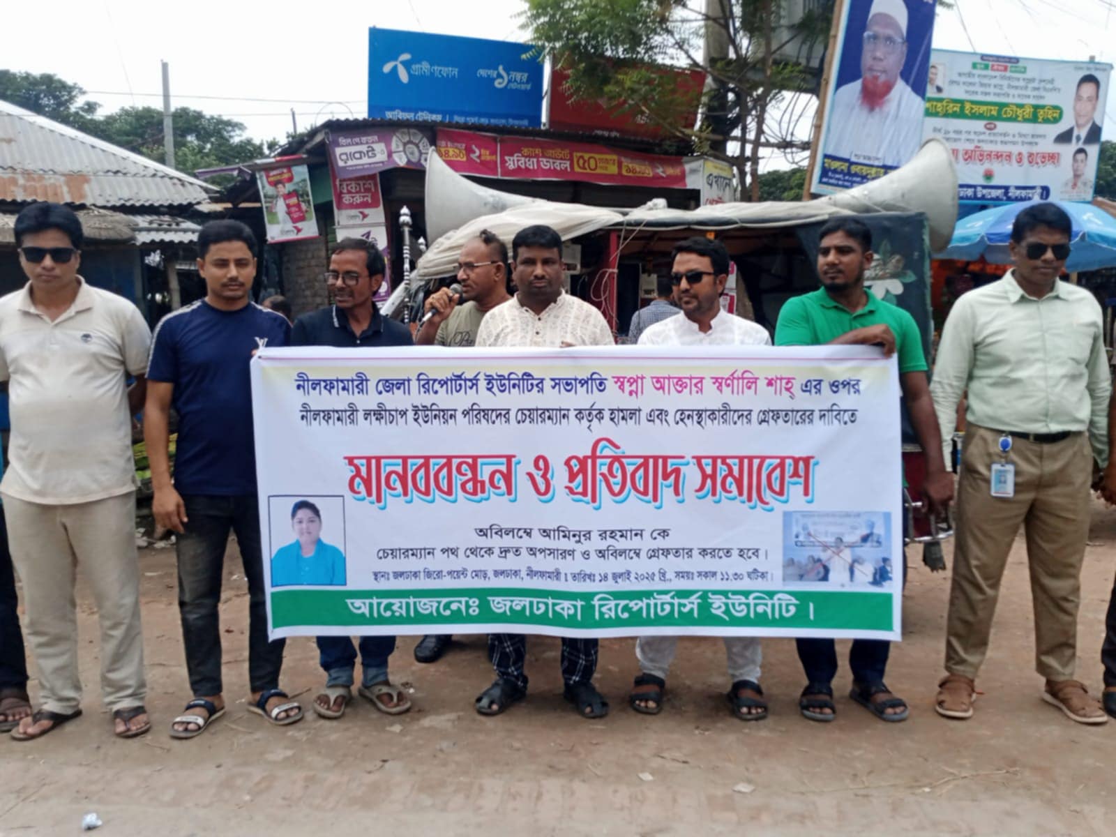 উল্লেখ্য, গত বুধবার রাতে নীলফামারী জেলা রিপোর্টার্স ইউনিটির সভাপতির উপর লক্ষিচাপ ইউনিয়নের চেয়ারম্যান আমিনুর রহমানের নির্দেশে তার লোকজন হামলা চালায় এবং হেনস্থা করে।