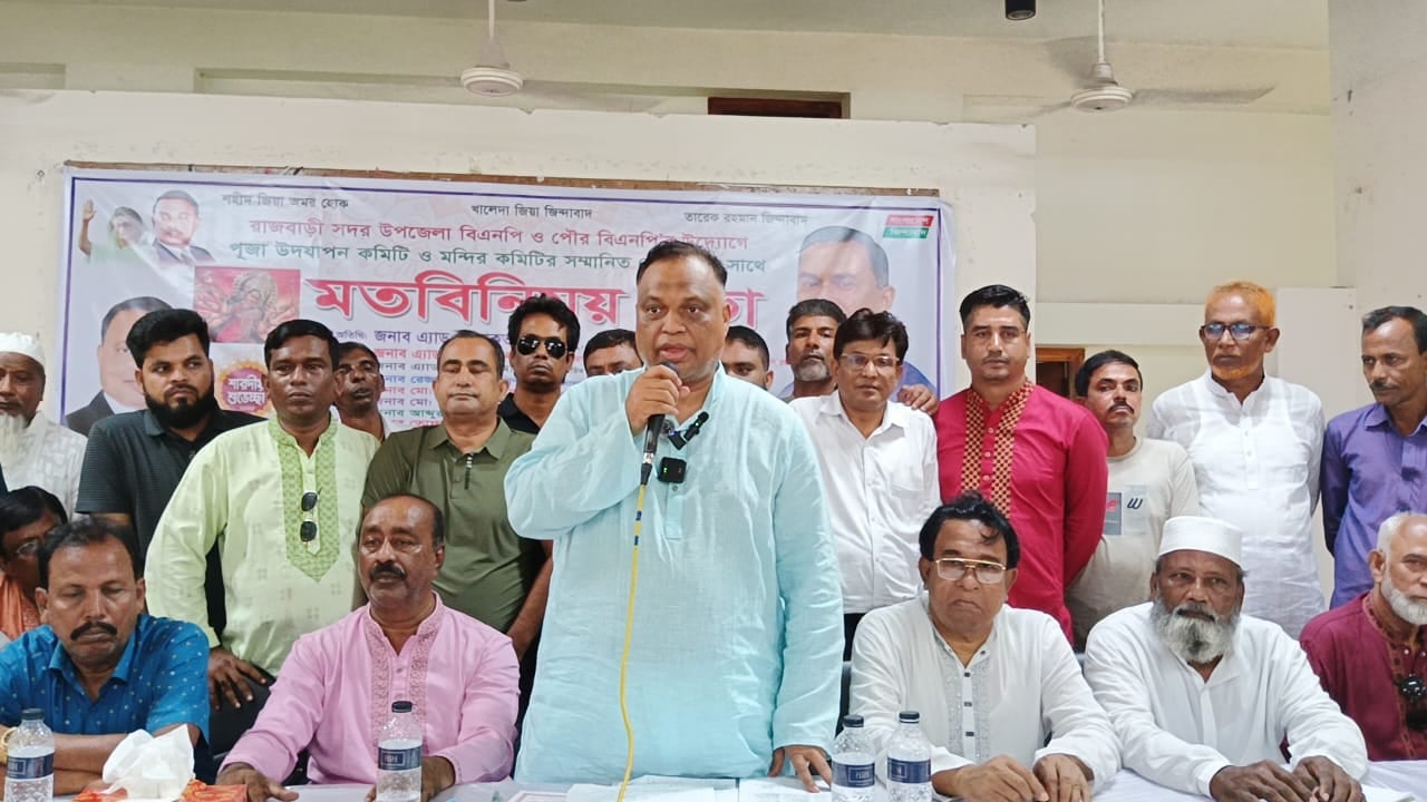রাজবাড়ীতে পূজা উদযাপন কমিটি ও মন্দির কমিটির নেতৃবৃন্দের সাথে সদর উপজেলা ও পৌর বিএনপির মতবিনিময় সভা অনুষ্ঠিত হয়েছে।