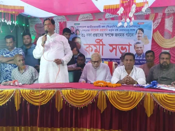 যশোরের বিএনপি‘র ভারপ্রাপ্ত চেয়ারম্যান তারেক রহমান ঘোষিত রাষ্ট্র মেরামতের ৩১ দফা বাস্তবায়নের লক্ষ্যে ও জনগণের দ্বারপ্রান্তে পৌঁছে দেওয়ার জন্য এবং জনমত গঠনের লক্ষ্যে চার নম্বর নারিকেলবাড়িয়া ইউনিয়নের ৫ নম্বর ওয়ার্ড বিএনপি কর্তৃক আয়োজিত কর্মীসভা অনুষ্ঠিত হয়।