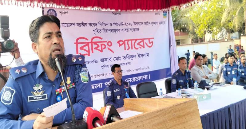 ৮ ফেব্রুয়ারী রবিবার বিকালে নেত্রকোনা পুলিশ লাইনস মাঠে আসন্ন ত্রয়োদশ জাতীয় সংসদ নির্বাচন ও গণভোট ২০২৬ উপলক্ষে আইন শৃঙ্খলা রক্ষার্থে গৃহীত নিরাপত্তা মূলক ব্যবস্থা সংক্রান্ত ব্রিফিং প্যারেড শেষে উপস্থিত সাংবাদিকদের তিনি এসব কথা বলেন।