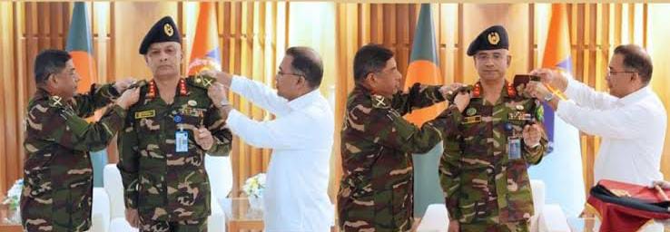 দিনের নির্ধারিত কর্মসূচির অংশ হিসেবে লেফটেন্যান্ট জেনারেল মীর মুশফিকুর রহমান এবং মেজর জেনারেল কায়সার রশিদ চৌধুরীকে র্যাঙ্ক ব্যাজ পরিয়ে দেন প্রধানমন্ত্রী।