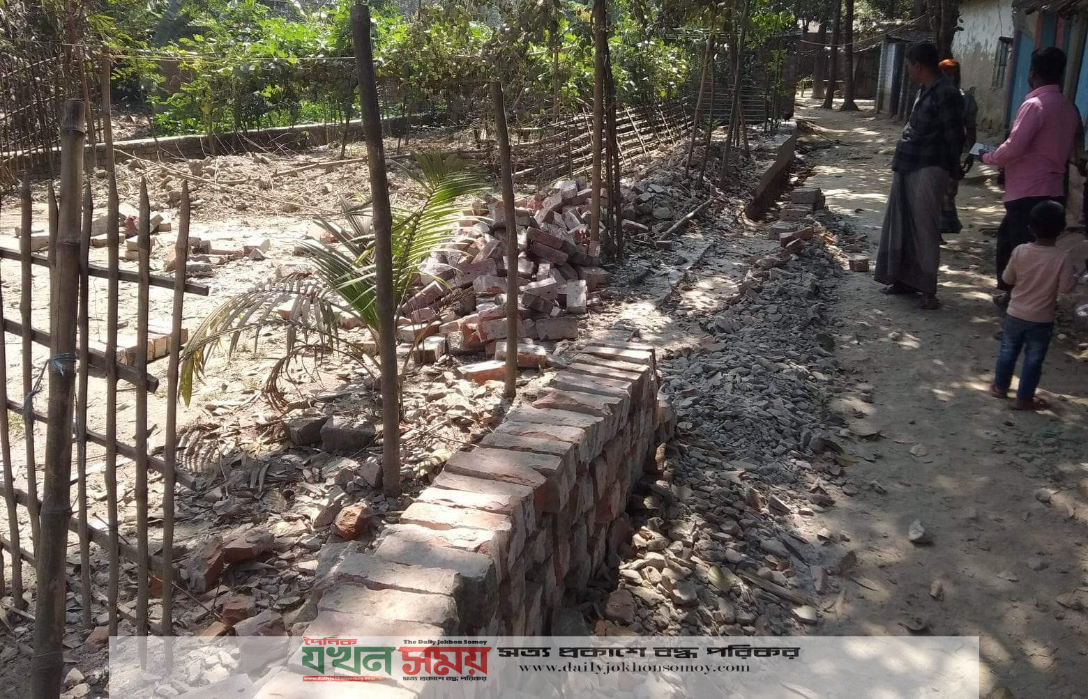 বগুড়ার শাজাহানপুরে বাউন্ডারি প্রাচীর ভেঙ্গে চলাচলের রাস্তা সংকুচিত করার চেষ্টা