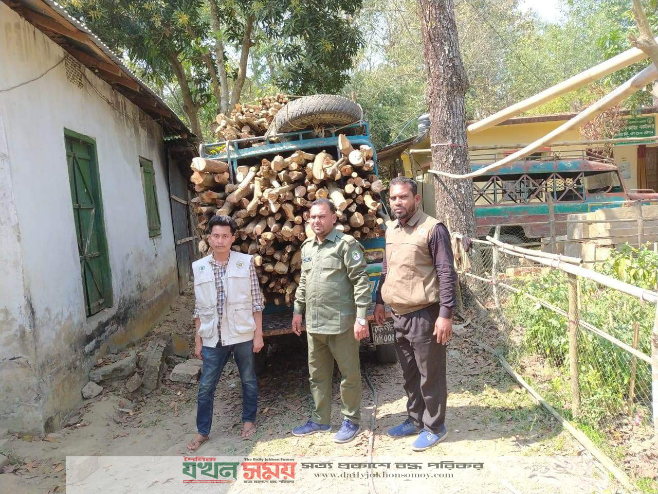 বন বিভাগের অভিযানে জ্বালানী লাকড়ি সহ চাঁদের গাড়ি আটক