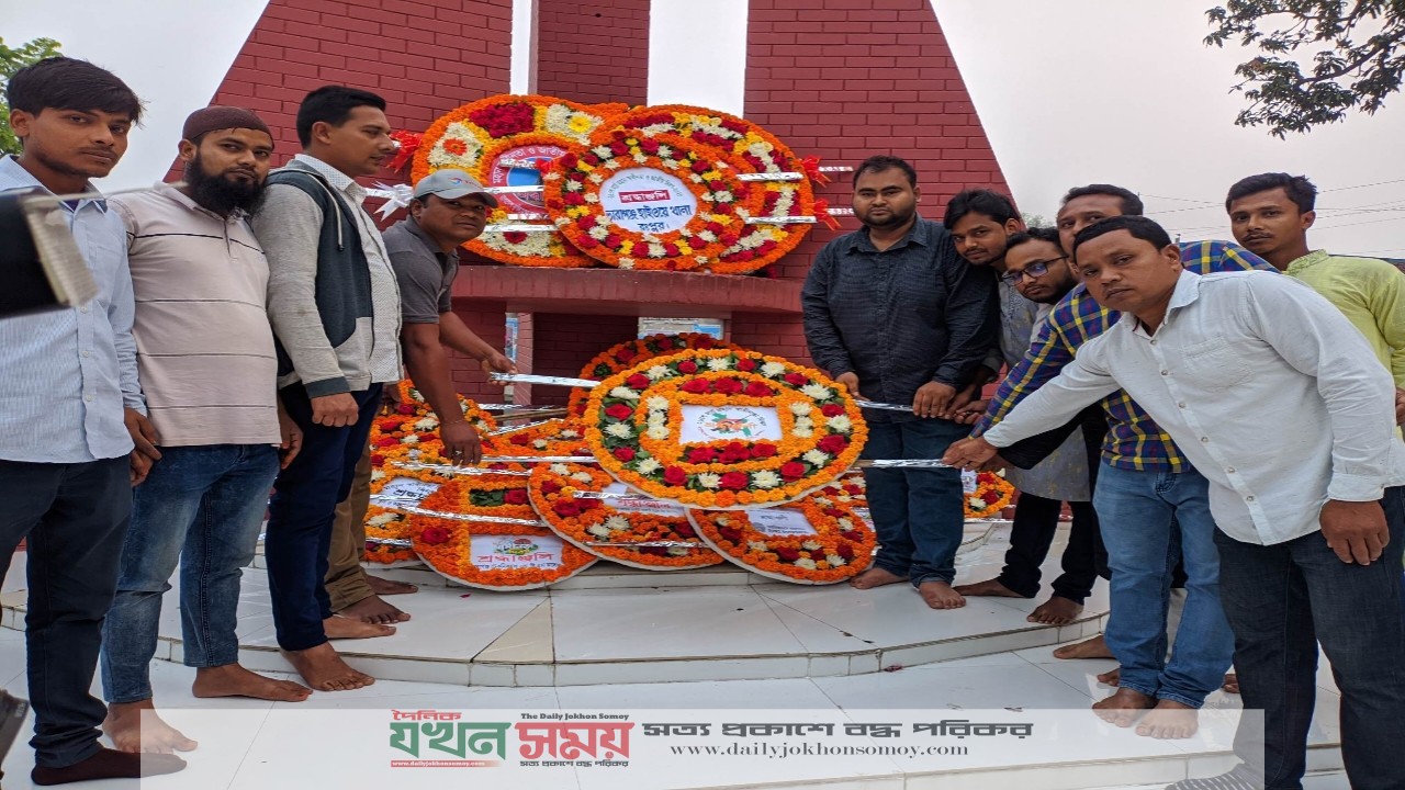 বাংলাদেশ প্রেসক্লাবের পক্ষে তারাগঞ্জে কেন্দ্রীয় স্মৃতিসৌধে পুষ্পমাল্য অর্পণ