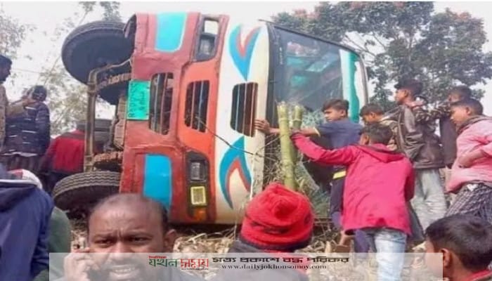 সুন্দরগঞ্জে বাস খাদে, ১ যাত্রী নিহত, আহত ১