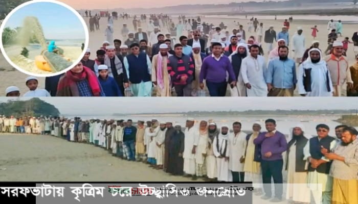 কর্ণফুলীর তীরবর্তী সরফভাটার মানুষ উচ্ছ্বাসিত কৃত্রিম বালুচর পেয়ে।