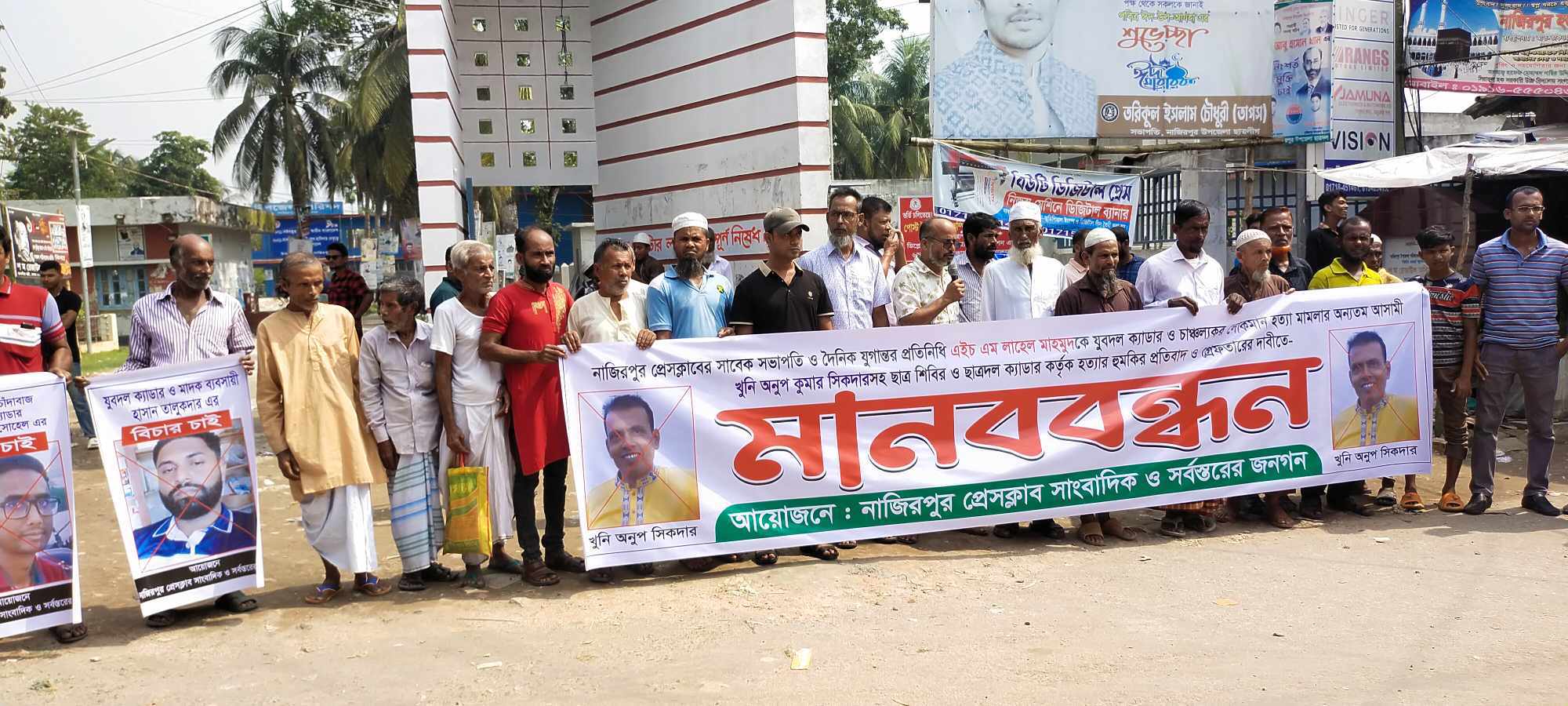 বুধবার (১৮ অক্টোবর) সকাল ১০ টায় নাজিরপুর উপজেলা পরিষদ চত্বরে এ মানববন্ধন অনুষ্ঠিত হয়।