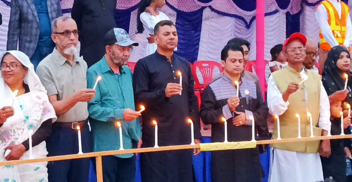 নড়াইলে সূর্যাস্তের সঙ্গে সঙ্গে লাখো প্রদীপ জ্বালিয়ে ভাষা শহীদদের স্মরণ