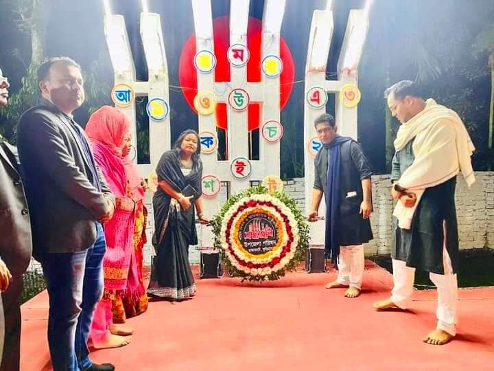 রাজারহাট উপজেলা চেয়ারম্যান ও নির্বাহী অফিসারের নেতৃত্বে ২১শে ফেব্রুয়ারি’র প্রথম প্রহরে পুষ্পার্ঘ অর্পণ