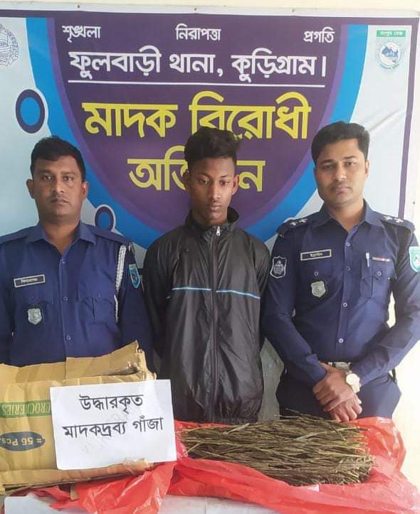 কুড়িগ্রামের ফুলবাড়ী থানা পুলিশের একটি টিম অদ্য (২৯ ফেব্রুয়ারি) ২০২৪ ভোর ৫.৫০ ঘটিকার সময় ফুলবাড়ী থানাধীন নাওডাঙ্গা ইউনিয়নের পশ্চিম বালাতারী গ্রামের মাদক কারবারি মোঃ রাকিব হাসান (২০) কে ৫ কেজি ১০০ গ্রাম গাঁজাসহ হাতেনাতে গ্রেফতার করে পুলিশ।
