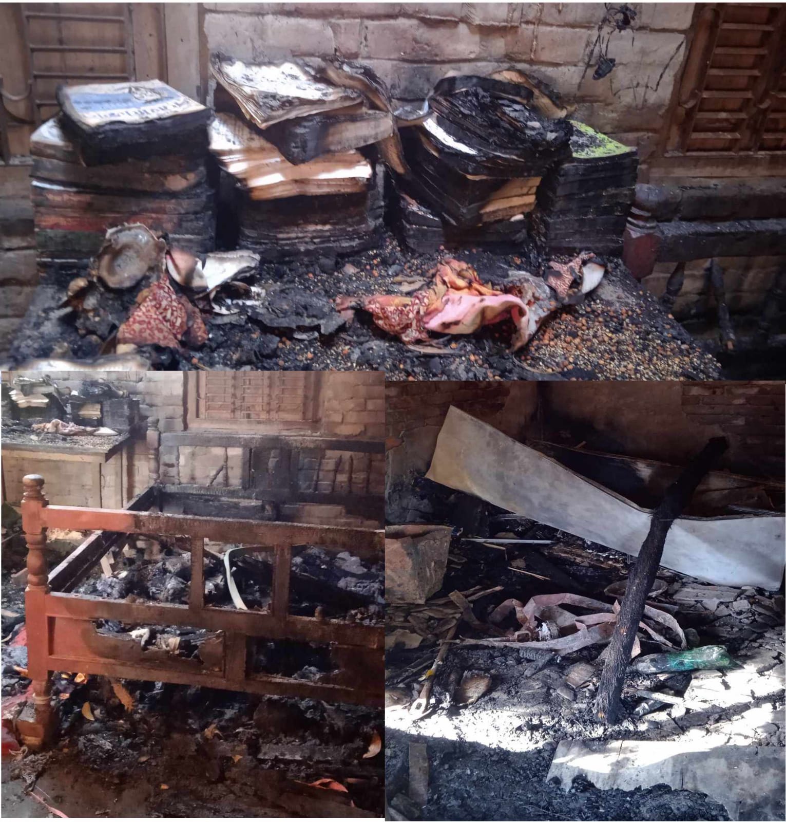 বাড়ির গৃহকর্তা জিল্লুর রহমান জানান, বাড়ির সাথে দোকান ঘরে রাতে বৈদ্যুতিক শর্ট সার্কিট থেকে আগুনের সূত্রপাতে হয়ে সারা বাড়িতে দ্রুত পড়ে, দোকান ঘরে থাকা মালামাল ও নগদ অর্থ ৯০,০০০/= টাকা এবং বাড়ীর ০৫টি টিনের দালান ঘরের আসবাবপত্র ও অন্যান্য মালামালসহ পুরে যায়।