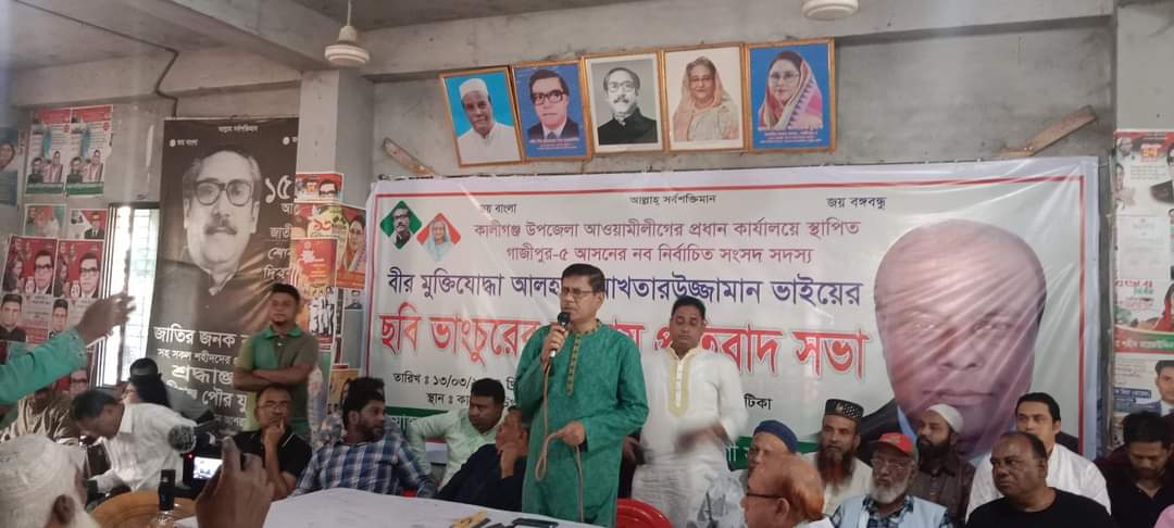 গাজীপুর ৫ আসনের মাননীয় সংসদ সদস্য বীর মুক্তিযোদ্ধা আলহাজ্ব আখতারউজ্জামান এমপি মহোদয়ের ছবি ভাংচুরের ঘটনায় ১৩ মার্চ বুধবার প্রতিবাদ সভা অনুষ্ঠিত হয়।