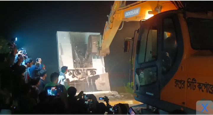 রংপুরের বেগম রোকেয়া বিশ্ববিদ্যালয় থাকা বুলডোজার দিয়ে গুড়িয়ে দেওয়া হল শেখ মুজিবুর রহমানের ম্যুরাল
